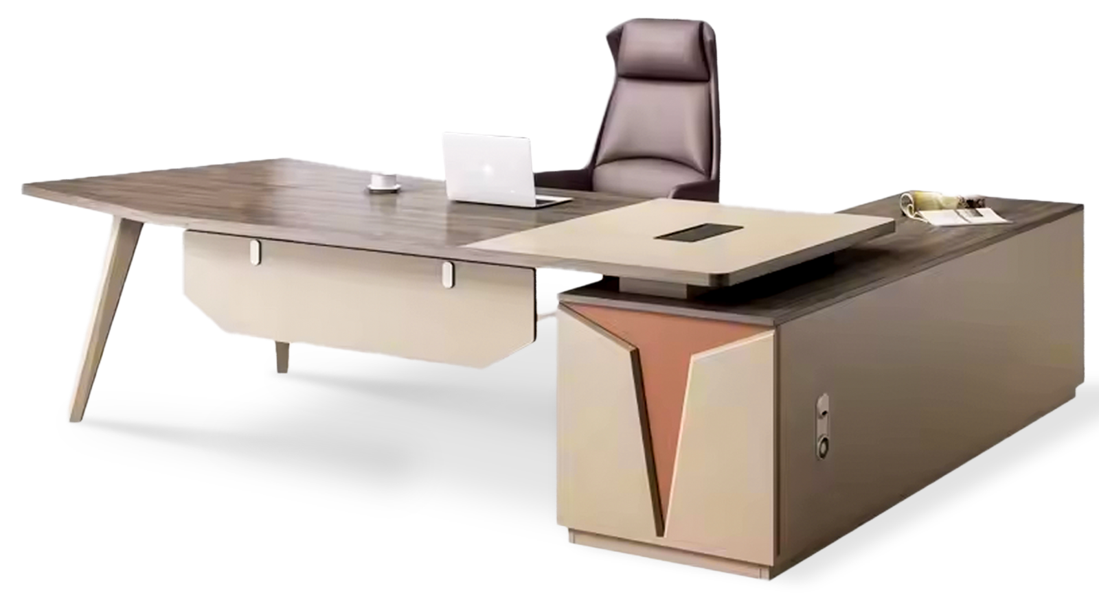مكتب مدير 240 سم بسايد 160 سم – MDF إسباني | Arkan Office – كود M1000